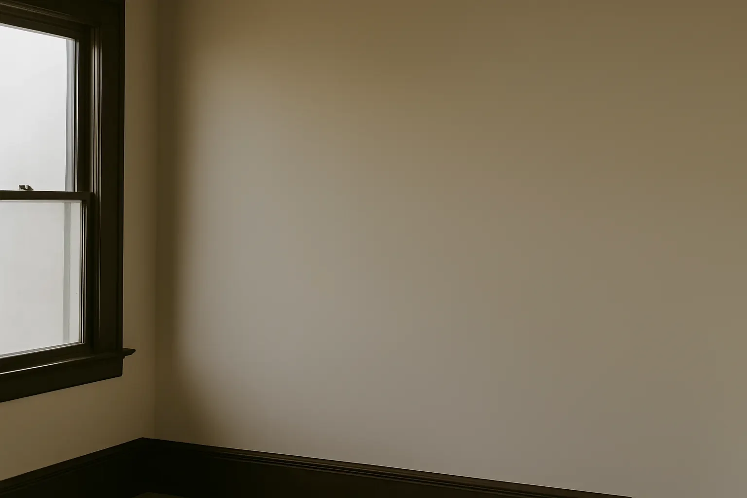 A minimalist soft beige interior with natural light filtering through a window.